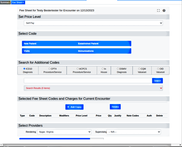 NOTE: as of 4 Sep 24 a post to the forum discusses a bug that limits the fee sheet code list to 40 entries.