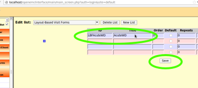 - 6. Enter the form name in 2nd column; use "AcuteWD"